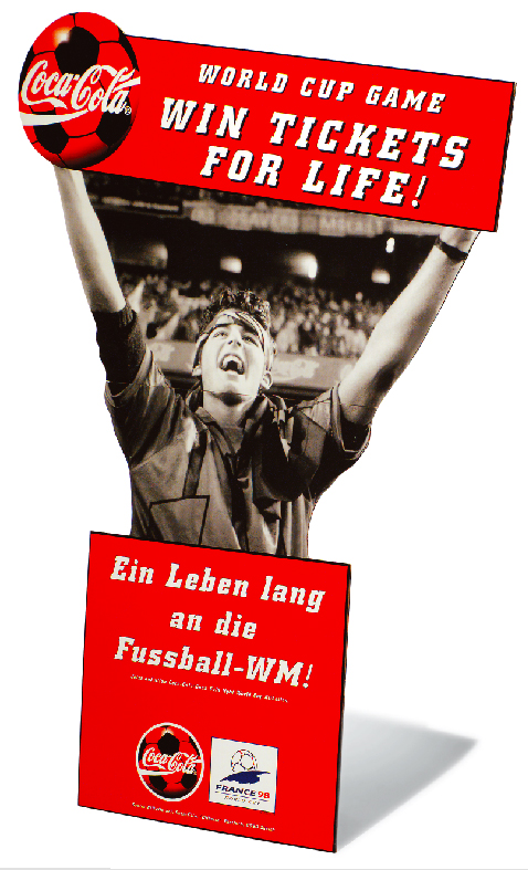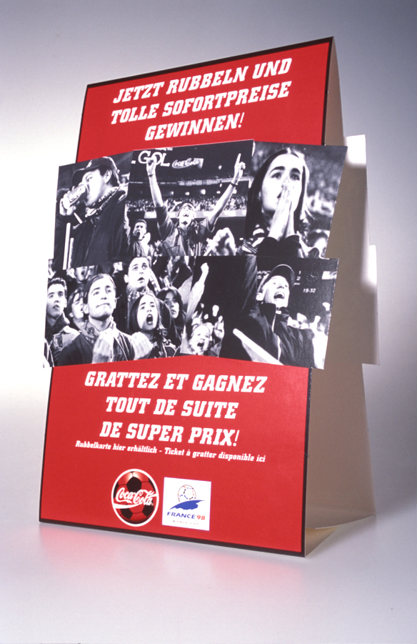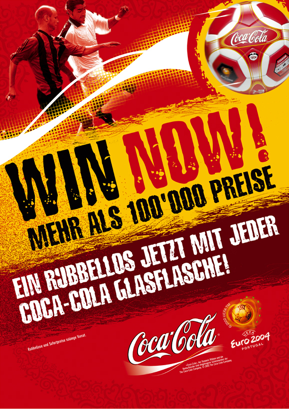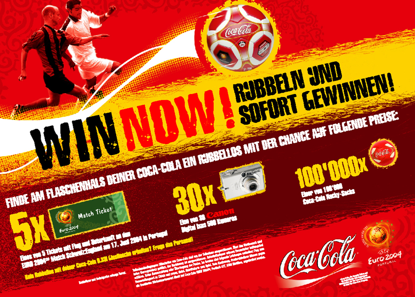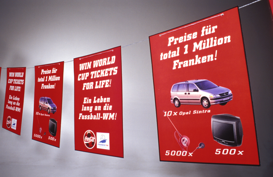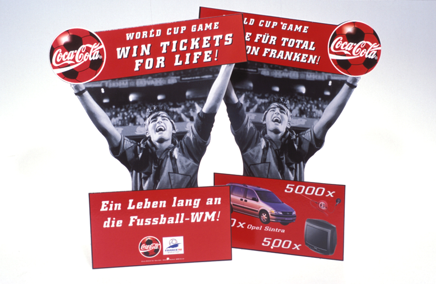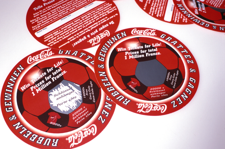 Als einer der Hauptsponsoren der Fussball-Welt- und Europameisterschaften galt es, das Engagement positiv auf den Markenkern wie auch in die Abverkäufe umzumünzen. Aus diesem Grund haben wir die Aufgabe erhalten, eine der grössten Verkaufsförderungsmassnahmen für die Coca-Cola Company in der Schweiz durchzuführen. Auf Millionen von Etiketten, über speziell produzierte TV-Spots, Plakate, Inserate und eine Vielzahl von POS-Werbemitteln wurden die Konsumenten auf breiter Front auf die Promotion aufmerksam gemacht. Das Ganze musste auf die verschiedensten Handelskanäle und auch auf die Gastronomie zugeschnitten werden. In Zusammenarbeit mit der Presse wurde die Aktion noch spürbarer gemacht. Der Erfolg: weltmeisterlich. Wann dürfen wir für Sie einen Titel holen?