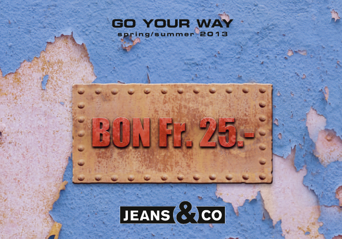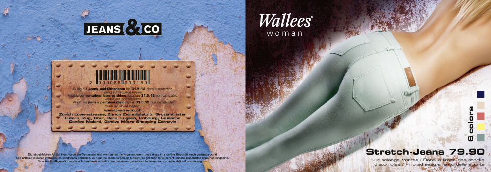 Der Marken-Prospekt, der bewegt. Zweimal im Jahr steigern wir für Jeans&Co den Umsatz und die Bekanntheit markant. Mit einer Kombination von Traffic-Building und Verkaufsförderungs-Tool, Image-Inseraten und Verkaufs-Bildern von Marken wie Levi's, G-Star Replay und anderen. de Jeanguenin: Konzeption, Kreation, Realisation, Produktion und Umsetzung.